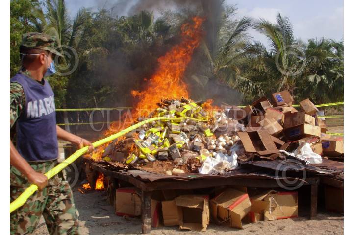 MANZANILLO, COLIMA, 26MAYO2010.- La Secretaría de Marina-Armada de México, en coordinación con la Procuraduría General de la República, llevó a cabo la incineración de mil 279.8 kilogramos de polvo de cocaína y 3 mil 645 kilogramos de polvo de efedrina en las instalaciones de la Sexta Región Naval. FOTO: SEMAR/CUARTOSCURO.COM
