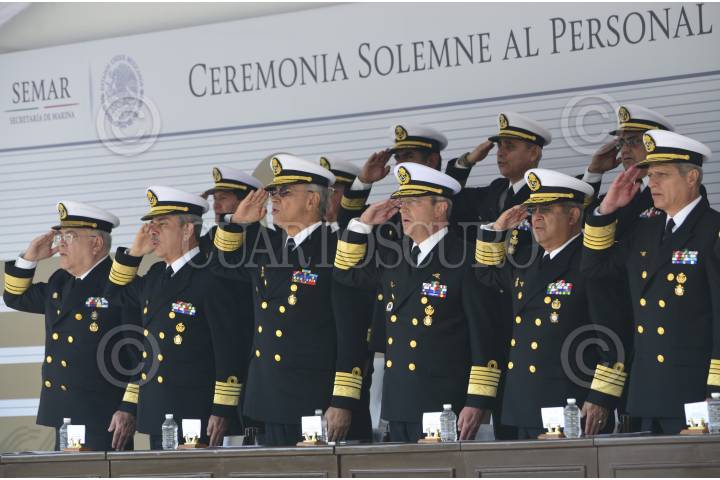 MÉXICO, DF, 02DICIEMBRE2013.- (De izq. a der. en cuarto lugar) El Almirante Vidal Francisco Soberón Sanz, secretario de Marina, encabezó la “Ceremonia Solemne al Personal de la Categoría Almirante para su retiro”, entre 12 de ellos los almirantes Jorge Humberto Pastor Gómez, Armando García Rodríguez, Joaquín Cetino Angulo y Miguel Huerta Barragán. “Ustedes son ejemplo de un alto sentido de responsabilidad, dedicación, profesionalismo y madurez pues han asumido desde siempre un compromiso con el mar, México y nuestra alma máter”, mencionó el secretario al término de la ceremonia que finalizó con el himno nacional entonado por la banda de guerra de la infantería de marina. FOTO: MARÍA JOSÉ MARTÍNEZ / CUARTOSCURO.COM
