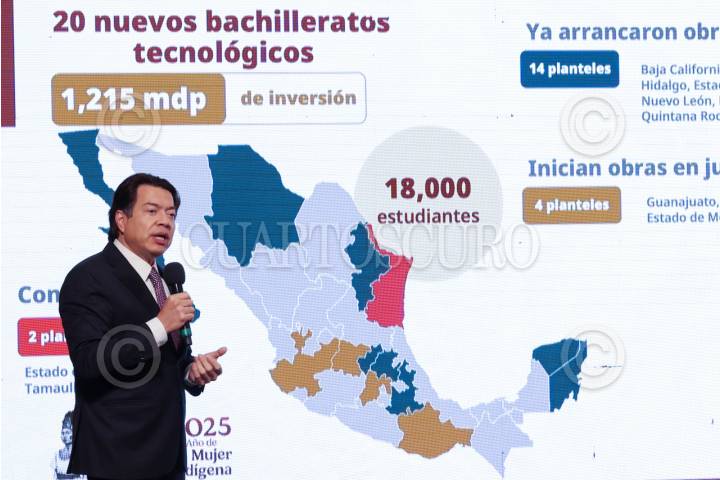 CIUDAD DE MÉXICO, 25AGOSTO2025.- Mario Delgado Carrillo, secretario de Educación Pública, presentó los resultados del programa "Mi derecho, mi lugar", con el cual casi el 60? los jóvenes que participaron obtuvieron su primera opción de escuela media superior. Esto ocurrió durante la Mañanera del Pueblo, encabezada por Claudia Sheinbaum Pardo, Presidenta de México. FOTO: MOISÉS PABLO / CUARTOSCURO.COM