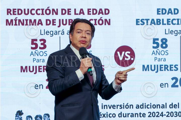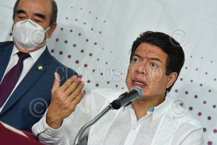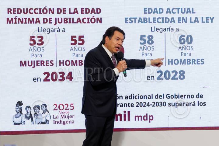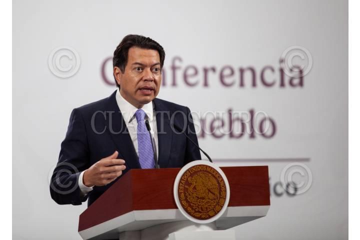 CIUDAD DE MÉXICO, 23JUNIO2025.– Mario Delgado Carrillo, secretario de Educación Pública, durante la conferencia matutina en Palacio Nacional, donde presentó dos decretos en materia educativa: uno relacionado con la reducción de la edad de jubilación para docentes, y otro que permitirá solicitar su cambio a escuelas, tomando en cuenta la antigüedad. FOTO: MOISÉS PABLO/CUARTOSCURO.COM