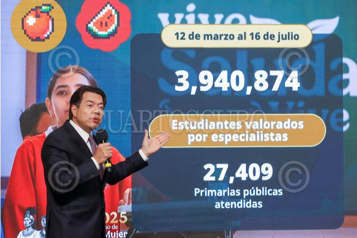 CIUDAD DE MÉXICO, 04AGOSTO2025.- Mario Delgado, titular de la SEP, dio detalles del programa Vida Saludable, el cual busca que los estudiantes de educación básica adopten hábitos y una alimentación balanceada para mantener un peso corporal adecuado. Sus declaraciones se dieron durante la Mañanera del Pueblo. FOTO: MOISÉS PABLO/CUARTOSCURO.COM