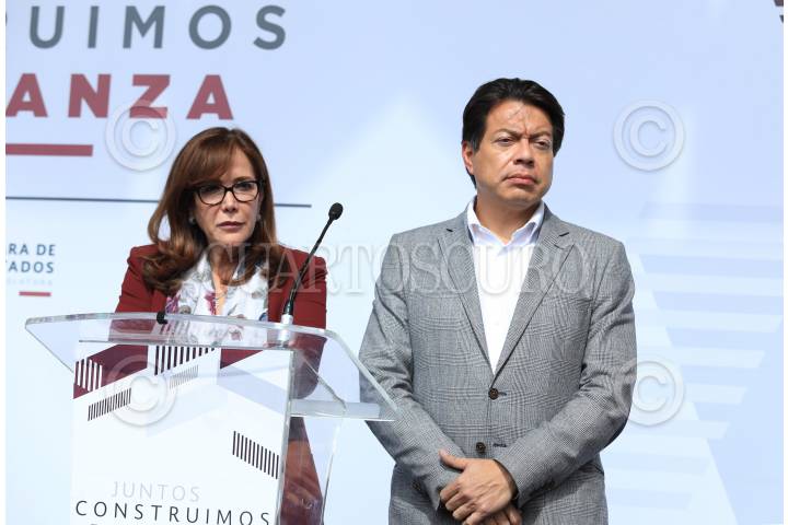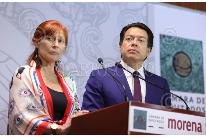 CIUDAD DE MÉXICO, 02SEPTIEMBRE2019.- Concluyeron los trabajos de la reunión plenaria de Morena en la Cámara de diputados, al finalizar el coordinador Mario Delgado Carrillo y Yeidckol Polevnsky Gurwitz, dirigente nacional del partido, ofrecieron una rueda de prensa. FOTO: CUARTOSCURO.COM