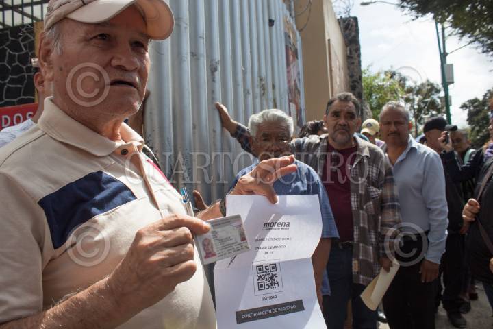 CIUDAD DE MÉXICO, 20OCTUBRE2019.- Esta mañana se llevo acabo la Asamblea Distrital para la elección del próximo Dirigente nacional de Morena, en el Salón de los Espejos del Centro Deportivo Coyuya en el Distrito 13, en la Delegación de Iztacalco. A dicha Asamblea acudieron adultos mayores y jóvenes, quienes tras esperar más de 4 horas formados tuvieron que retirarse debido a la cancelación de la Asamblea por motivos de organización por parte del Gobierno para hacer registro de sus credenciales INE y escaneo de los códigos QR, los cuales fueron requisitos para emitir su voto como ciudadanos. FOTO: MAGDALENA MONTIEL /CUARTOSCURO