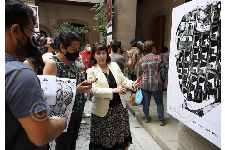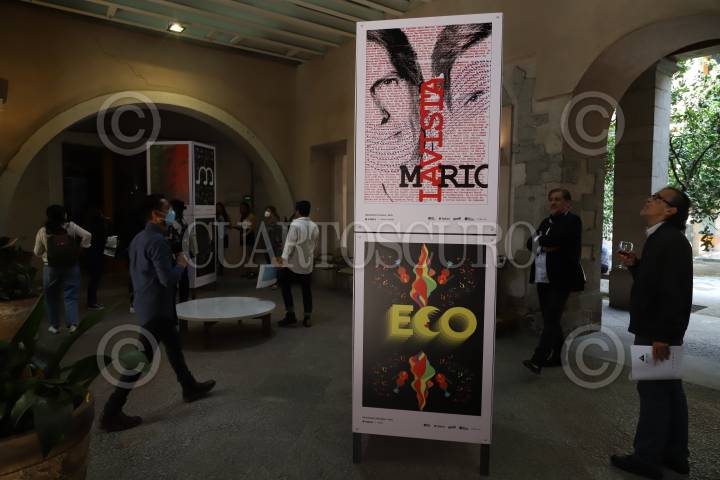 Inauguración de la exposición Reflejos de la noche, homenaje gráfico a Mario Lavista, colección de carteles, resultado de una convocatoria de Poster’s Not Dead y Urtext Digital Classics en El Colegio Nacional.