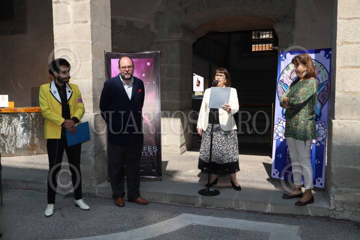 LeD Ramírez; Sergio Vela Director de Arte y Cultura de Grupo Salinas; Marisa Canales de Urtext; Tereza Vicencio secretaria administradora de El Colegio Nacional durante la inauguración de la exposición Reflejos de la noche, homenaje gráfico a Mario Lavista, colección de carteles, resultado de una convocatoria de Poster’s Not Dead y Urtext Digital Classics en El Colegio Nacional.