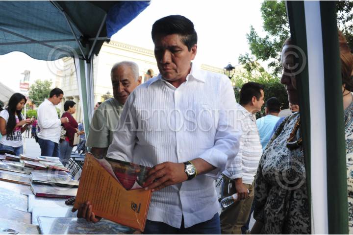 CHILPANCINGO, GUERRERO, 23ABRIL2014.- El presidente municipal Mario Moreno Arcos inauguró la feria del libro que organiza la dirección de cultura municipal y editorialistas, en el zócalo de esta ciudad, en el marco del “Día Internacional del Libro”. FOTO: JOSÉ I HERNÁNDEZ /CUARTOSCURO.COM