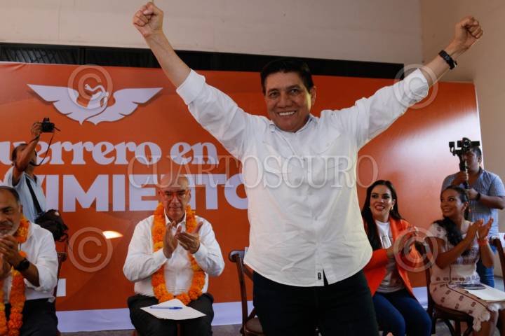 CHILPANCINGO, GUERRERO, 21FEBRERO2024.- Ciudadano (MC) presentó oficialmente al ex priista Mario Moreno Arcos como candidato al Senado de la República y como su compañera de formula la diputada local Gabriela Bernal Reséndiz, quien recientemente se separó del Grupo Parlamentario del PRI en el Congreso local. En su mensaje el Dirigente Nacional de MC, Dante Delgado Rannauro reconoció el trabajo y presencia política del ex gobernador de Guerrero, Héctor Astudillo Flores y del candidato al Senado, Mario Moreno Arcos y envió un saludo y abrazo al ex gobernador de Guerrero, el perredista Ángel Aguirre Rivero a quien calificó como su amigo. FOTO: DASSAEV TÉLLEZ ADAME/CUARTOSCURO.COM