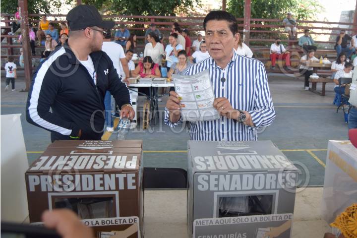 Mario Moreno Arcos, candidato a gobernador por el PRI-PRD, acudió con su esposa a emitir su voto.