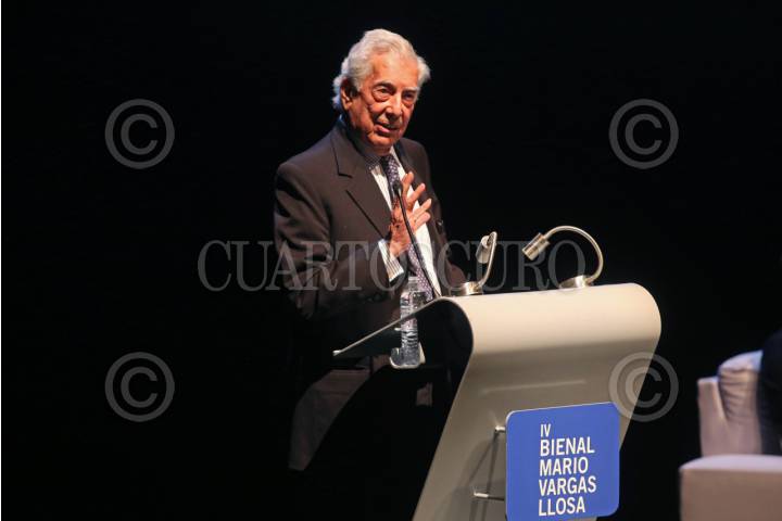 Mario Vargas Llosa escritor Peruano, durante si intervención en la ceremonia de inauguración de la IV Bienal que lleva su nombre.