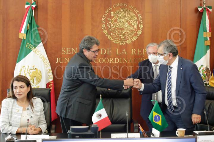 Vahan Agopyan, rector de la Universidad de Sao Paulo, fue recibido por Ricardo Monreal, en el Senado de la República.
