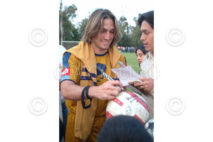 MEXICO, D.F. 28DICIEMBRE2004.- Bruno Marioni, delantero de los Pumas de la UNAM, firmó autógrafos a sus seguidores al finalizar el entrenamiento de su equipo. FOTO: Iván Stephens/CUARTOSCURO.COM