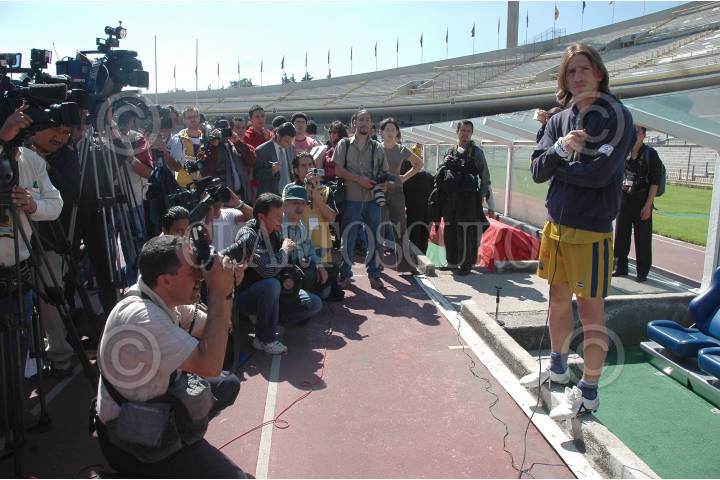 MEXICO, D.F. 02NOVIEMBRE2005.- Bruno Marioni, delantero, durante la rueda de prensa que realizó previo al entrenamiento de los pumas de la UNAM en el Estadio de Ciudad Universitaria. FOTO: Iván Stephens/CUARTOSCURO.COM