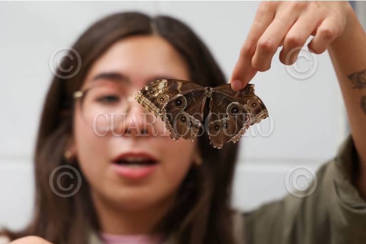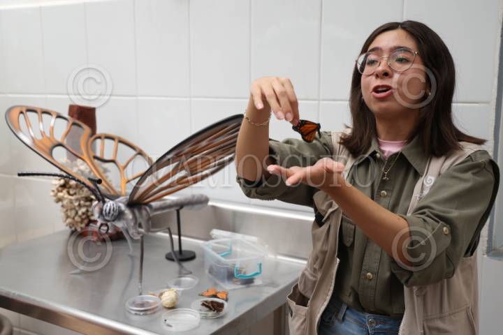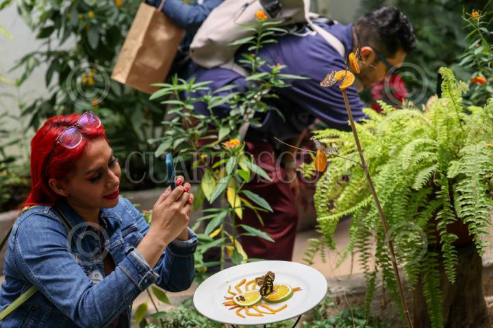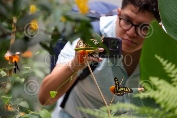 CIUDAD DE MÉXICO, 12JUNIO2025.- Autoridades del Centro de Conservación de la Vida Silvestre Chapultepec (antes conocido como Zoológico de Chapultepec) llamaron a los visitantes a que no se pierdan la experiencia de visitar el mariposario, el cual se encuentra de manteles largos ya que está cumpliendo 20 años. Las personas que acuden a este sitio, en donde se crían a decenas de especies de este artrópodo, podrán liberarlos, saber cómo se les ayuda para su reproducción, que comen, y sobre todo el respeto para no dañarlos y que puedan seguir reproduciendo en su habitas naturales. Una de las conservadoras mostró la fragilidad de estos animales, que muchas veces tienen que viajar miles de kilómetros para reproducirse como la mariposa Monarca. Durante la estancia los visitantes tienen que cuidar donde ponen sus pies ya que hay decenas de ellos, tanto es así que algunos se posan sobre las personas. FOTO: MOISÉS PABLO/CUARTOSCURO.COM