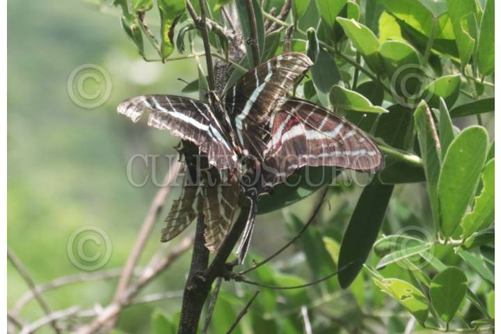 TLAQUILTENANGO, MORELOS, 29JUNIO2025.- Tres mariposas cometa golondrina negra se enciman como parte de su apareamiento. Imagen tomada esta mañana en la selva baja caducifolia que rodea la zona arqueológica de Chimalacatlán, en el extremo sur de Morelos. FOTO: MARGARITO PÉREZ RETANA/CUARTOSCURO.COM