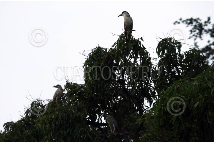 Garzas grises sobre un arbol de mango en la barranca del rio Tetlama el cual se veria afectado por el proyecto minero cerro del Jumil.