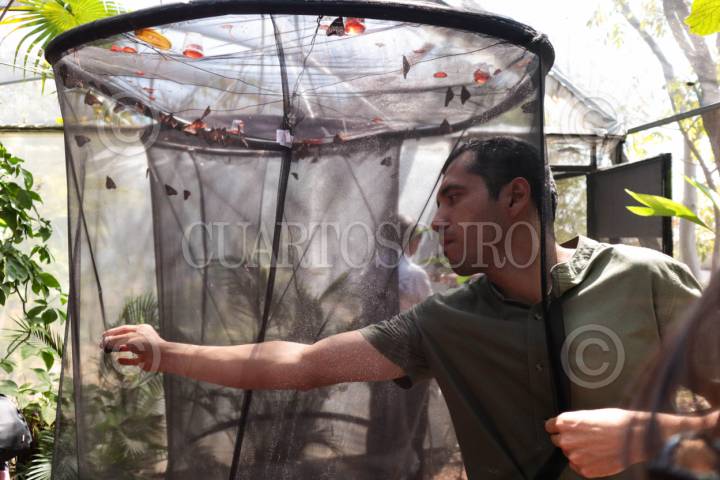 TUXTLA GUTIÉRREZ, CHIAPAS, 05MARZO2024.- -Un total de 148 ejemplares de mariposa reina (Danaus Gilippus) y Mariposa Monarca fueron liberadas en el invernadero de la UNICACH. Para esta liberación los expertos obtuvieron 210 huevos. El biólogo Mario Alberto dijo que el impacto del cambio climático en el planeta afecta a todos los seres vivos, y también a las mariposas. “Cambian los patrones de distribución, migratorio y en la tasa de reproducción de estas especies". El cuerpo académico conservación y biodiversidad UNICACH indicó que su objetivo es promover la conservación. “Las mariposas son polinizadores, es muy importante para la producción de las plantas. Solo en los hecho de no tener polinización no tendríamos frutos, las mariposas cumplen un rol muy importante en la naturaleza”. FOTO: DAMIÁN SÁNCHEZ/CUARTOSCURO.COM