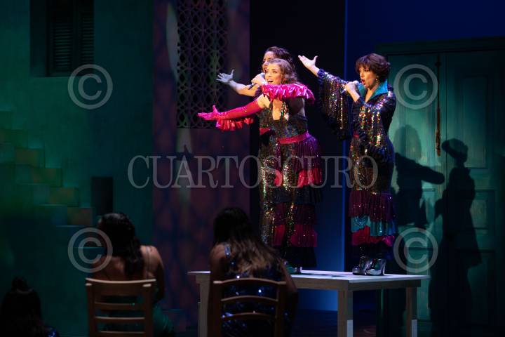 Marisol del Olmo, Lisset y Gisela Sehedi a su paso por la alfombra roja por el estreno del musical “Mamma Mía”, en el Teatro de Los Insurgentes.