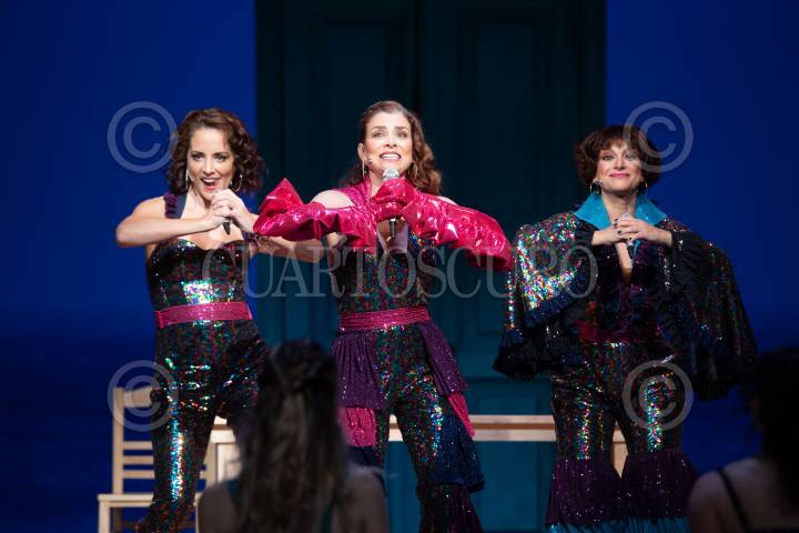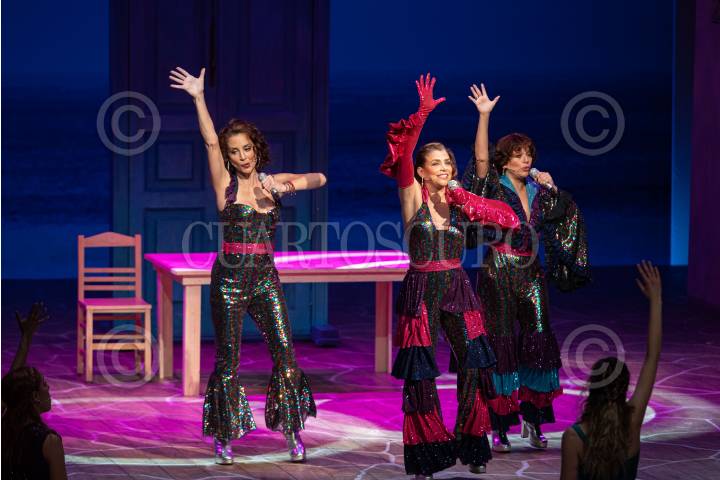 Marisol del Olmo y Lisset, Gisela Sehedi durante la presentación a prensa del musical "Mamma Mía!" en el Teatro de Los Insurgentes.