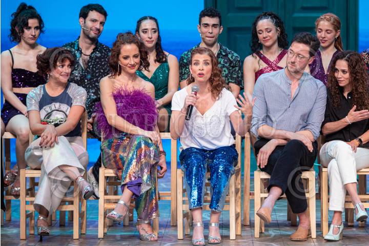 Marisol del Olmo durante la conferencia de prensa del musical "Mamma Mía!" en el Teatro de Los Insurgentes.
