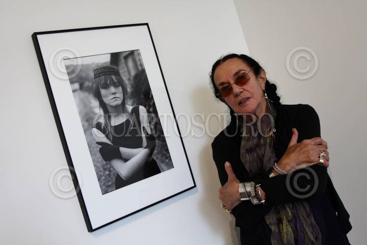 MEXICO, D.F., 02MARZO2011.- Mary Ellen Mark, fotógrafa documentalista estadounidense, posa con una foto de la serie que se presentará esta tarde noche. La ganadora del Victor Hasselblad Cover Award en 1992, presentará su serie documental Tiny y el film Streetwise realizado por el director Martin Bell, nominado para el Oscar en 1984. Tiny es un documental que ahonda sobre la vida en las calles de los niños y adolescentes de Seattle en 1983, cuando esta ciudad había sido nombrada la más habitable de América. La inauguración será en Patricia Conde Galería, ubicada en la zona de Polanco. FOTO: MISAEL VALTIERRA/CUARTOSCURO.COM