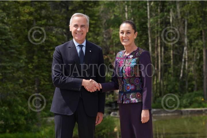ALBERTA, CANADÁ, 17JUNIO2025.– Claudia Sheinbaum Pardo, presidenta de México, agradeció a Mark Carney, primer ministro de Canadá, al concluir su participación en la Cumbre del G7. FOTO: PRESIDENCIA/CUARTOSCURO.COM
