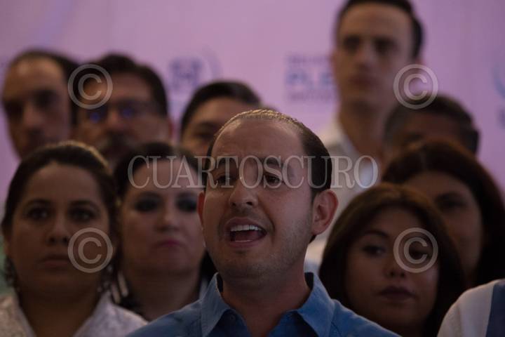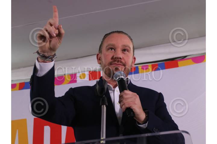 CUERNAVACA, MORELOS, 17ABRIL2024.- Xóchitl Gálvez Ruiz, candidata a la Presidencia de la República, de la coalición "Fuerza y corazón por México" (PAN, PRI y PRD) realizo un mitin en la plaza Solidaridad, acompañada de Jesús Zambrano, presidente nacional del PRD y Marko Cortez, presidente nacional del PAN, además de Lucia Meza, candidata a la gubernatura y de José Luis Urióstegui, quien se postula para la reelección en la presidencia de la capital. Otros candidatos a puestos de elección popular también acompañaron a Gálvez Ruiz. En la imagen el líder nacional del Partido Acción Nacional, Marko Cortes. FOTO: MARGARITO PÉREZ RETANA/CUARTOSCURO.COM