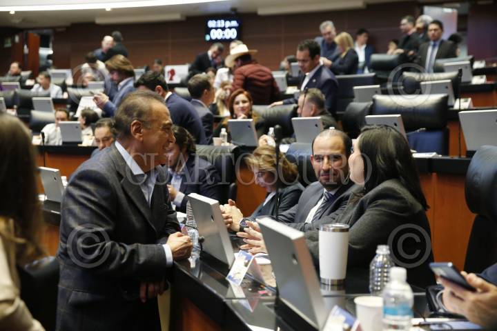 CIUDAD DE MÉXICO, 10DICIEMBRE2024.- Los senadores Manlio Fabio Beltrones y Marko Cortés durante la sesión en el Senado de la República. FOTO: CUARTOSCURO.COM