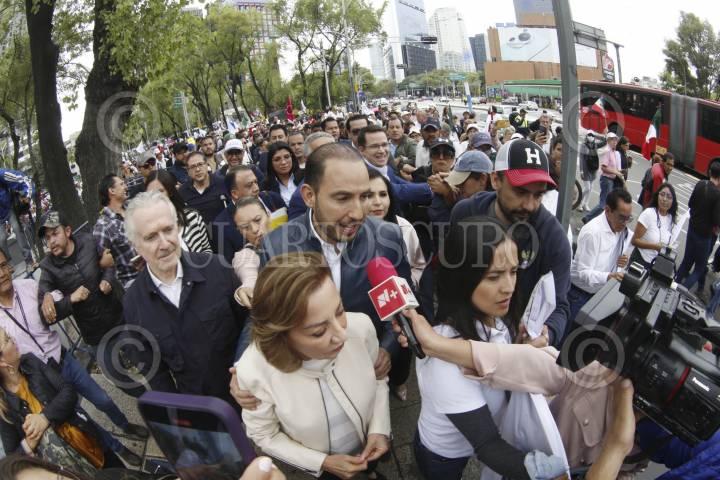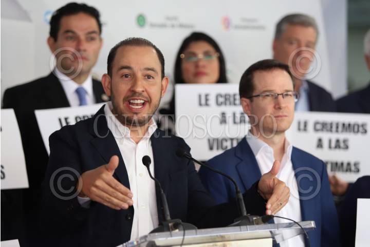 CIUDAD DE MÉXICO, 09SEPTIEMBRE2024.- La senadora Guadalupe Murguía acompañada de Marko Cortés y otros compañeros de bancada ofrecieron una conferencia de prensa en al cual reiteraron su negativa del dictamen de la Reforma al Poder Judicial cuya ratificación inicia el día de mañana en el Senado. Ahí la coordinadora exigió al senador veracruzano Miguel Ángel Yunes Márquez posicionarse ante este tema. Estas declaraciones fueron al salir de una reunión en la Torre Azul. FOTO: GPPAN/CUARTOSCURO.COM