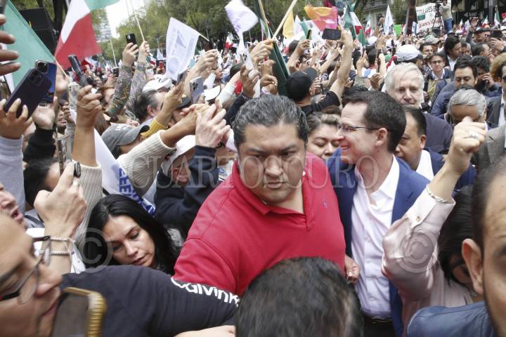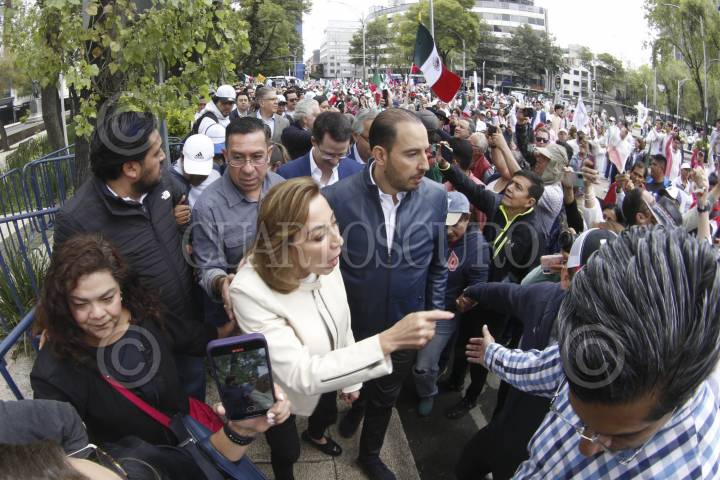 CIUDAD DE MÉXICO, 06SEPTIEMBRE2024.- Los senadores Guadalupe Murguía, Marko Cortés, Santiago Creel, y Ricardo Anya saludaron a los manifestantes afuera del Senado, quienes rechazan la ratificación de la Reforma al Poder Judicial. FOTO: CUARTOSCURO.COM