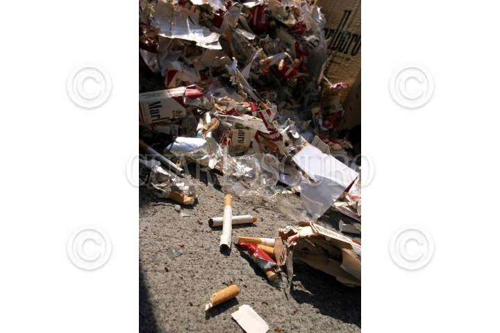 MÉXICO, D.F., 26OCTUBRE2007.- En las bodegas de la PGR ubicadas en Calzada Vallejo, se destruyó un cargamento de cigarros de la marca Marlboro que son de procedencia china y no estan hechos con los estandares de calidad adecuados. FOTO: MOISÉS PABLO/CUARTOSCURO.COM