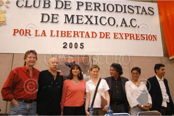 MEXICO, D.F. 18JUNIO2005.- La noche de ayer fue presentado el número 72 de la revista CUARTOSCURO, misma que cumplió 12 años desde su fundación. John Mraz, José Hernández Claire, Rebeca Monroy Mars, Ana Elena Mallet, Pedro Valtierra, Deyanira Lucero y Mario Basilio precidieron el evento en el club de periodistas de México. FOTO: Germán Romero/CUARTOSCURO.COM