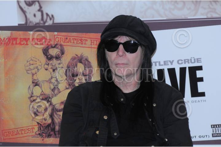 MÉXICO, D.F., 24MAYO2011.- El guitarrista, Mick Mars de la banda Mötley Crüe saluda a los periodistas que asistieron a la conferencia de prensa que ofrecieron con motivo de su concierto en la ciudad de México. FOTO:FRANCISCO RODRIGUEZ/CUARTOSCURO.COM