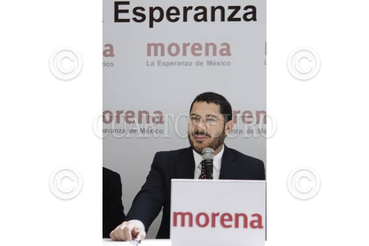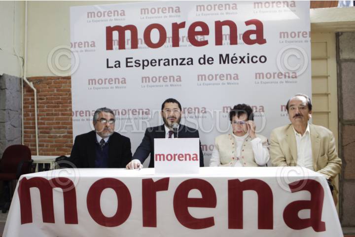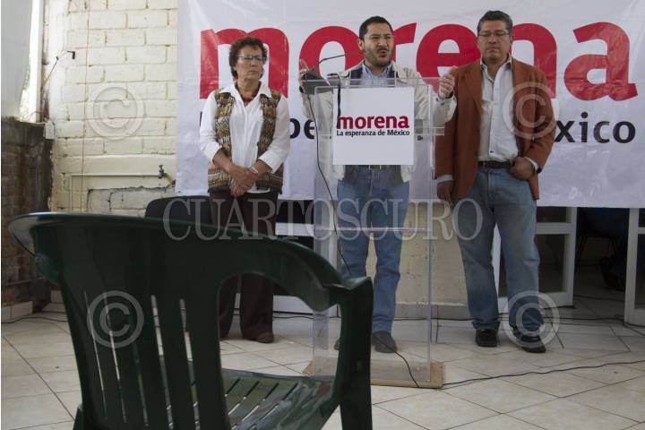MÉXICO, D.F., 08JULIO2014.- Marti Batres, Presidente Nacional de Morena, acompañado de Bertha Lujan y Froilán Yescas, durante la conferencia en las instalaciones de Morena. FOTO: GUILLERMO PEREA /CUARTOSCURO.COM