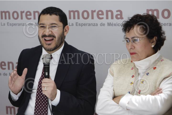 MÉXICO, D.F., 13FEBRERO2013.- Martí Batres, presidente nacional del Movimiento de Regeneración Nacional (MORENA), y Bertha Elena Luján, anunciaron la postura de la organización con respecto al Impuesto al Valor Agregado en alimentos en medicinas, al cual se oponen. FOTO: IVÁN STEPHENS /CUARTOSCURO.COM