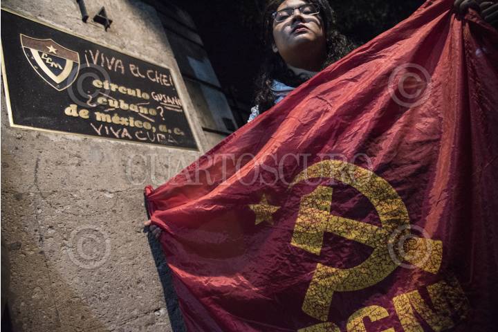 CIUDAD DE MÉXICO, 28ENERO2017.- Miembros del Partido Comunista de México, protestaron a las afueras del Circulo Cubano de México A.C., al interior se llevaba a cabo un homenaje al político José Martí. FOTO: TERCERO DÍAZ /CUARTOSCURO.COM