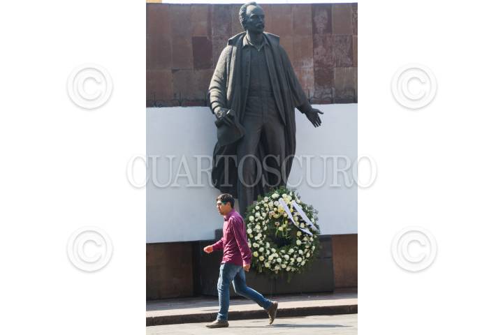 CIUDAD DE MÉXICO, 27ENERO2018.- Monumento a José Martí en el 165º aniversario de su natalicio. La escultura del Cubano se encuentra en el metro Hidalgo. FOTO: VICTORIA VALTIERRA /CUARTOSCURO.COM