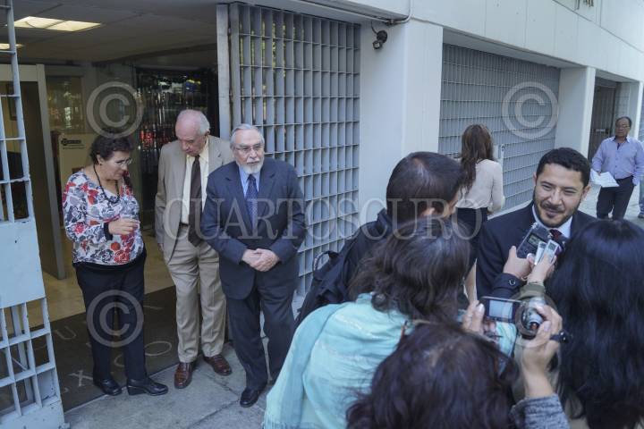 MÉXICO, D.F., 14DICIEMBRE2012.- Bernado Batiz, Bertha Lujan, José Agustín Ortiz Pinchetti y Martín Batres, a su salida de la reunión privada con el cardenal Norberto Rivera en la Arquidiocesis de México. FOTO: ADOLFO VLADIMIR /CUARTOSCURO.COM