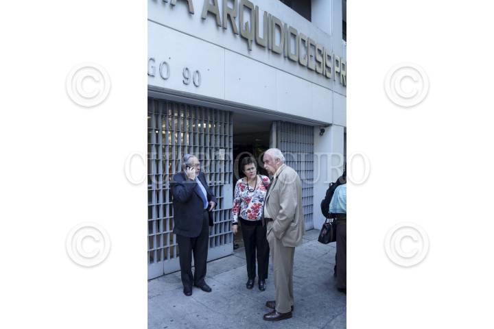 MÉXICO, D.F., 14DICIEMBRE2012.- Bernado Batiz, Bertha Lujan y José Agustín Ortiz Pinchetti, a la salida de la reunión privada con el cardenal Norberto Rivera en la Arquidiocesis de México. FOTO: ADOLFO VLADIMIR /CUARTOSCURO.COM