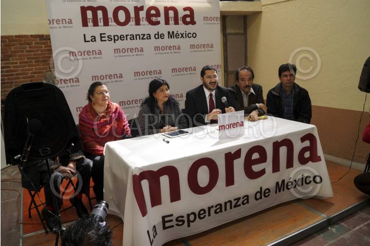 MÉXICO, D.F., 24ENERO2013.- Jaime López Vega, Teresa Guadalupe Reyes, Clara Brugada, Martín Batres, Jesús Ramírez Cuevas y Jesús Martin del Campo; integrantes del CEN del Movimiento de Regeración Nacional (MORENA), durante la conferencia de prensa en donde hablaron sobre el tinte electoral de la recién programa Cruzada contra el Hambre. FOTO: ADOLFO VALTIERRA /CUARTOSCURO.COM