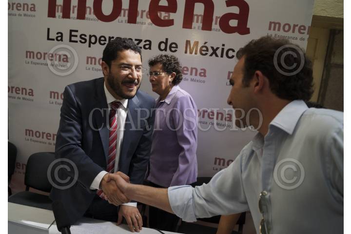 MÉXICO, D.F., 09ENERO2013.- Martín Batres, Presidente Nacional y Marco Medina, encargado de administración; durante la inauguración de la sede del Comité Ejecutivo Nacional del Movimiento de Regeneración Nacional (MORENA), en la calle de Santa Anita de la colonia Viaducto Piedad. Además, en conferencia de prensa presentaron el plan de financiamiento para el partido. FOTO: ADOLFO VALTIERRA /CUARTOSCURO.COM