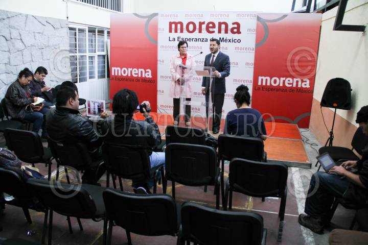 MÉXICO, D.F., 24ENERO2013.- Clara Brugada y Martín Batres, integrantes del CEN del Movimiento de Regeración Nacional (MORENA); durante la conferencia de prensa en donde hablaron sobre el tinte electoral de la recién programa Cruzada contra el Hambre. FOTO: ADOLFO VALTIERRA /CUARTOSCURO.COM