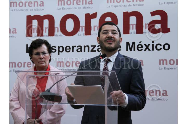 MÉXICO, D.F., 29ENERO2013.- Martín Batres, presidente del Movimiento de Regeneración Nacional MORENA; Tomás Pliego, responsable de Organización y Bertha Lujan, secretaria general; durante la conferencia de prensa para dar a conocer el primer corte de afiliados al partido. Hasta este día, que se cumplen 20 días de apertura del registro, el número de afiliados en todo el país es de 80 mil. FOTO: ADOLFO VALTIERRA /CUARTOSCURO.COM