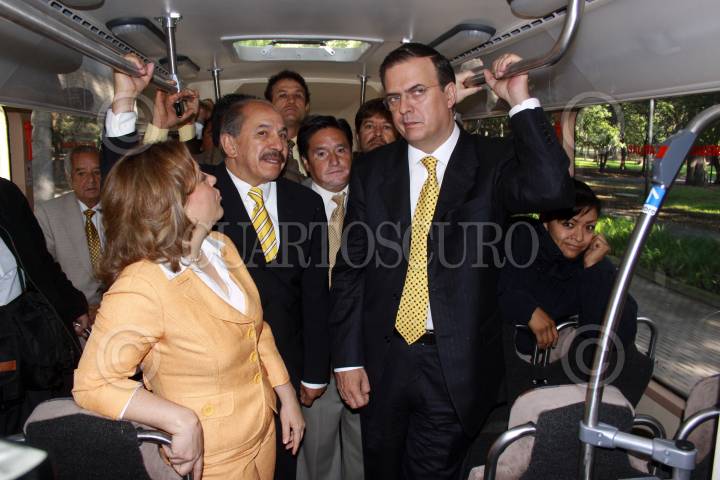 MÉXICO D.F., 29JUNIO2009.- Marta Delgado, secretaria de Medio Ambiente, Armando Quintero secretario de Transporte y Vialidad y Marcelo Ebrard jefe de gobierno capitalino, durante la entrega de loa autobuses ecológicos que circularán por el Corredor Reforma, en sustitución de 369 microbuses contaminantes, estos autobuses seran usados por alrededor de 175 mil personas y las unidades tendrán cámaras de monitoreo interno, GPS y pantalla de plasma con programación para los pasajeros. FOTO: RICARDO CASTELAN/CUARTOSCURO.COM