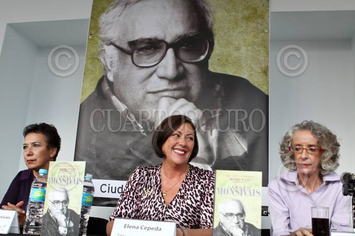 MÉXICO D.F., 19JUNIO2011.- Los escritores Sergio Pitol, Elena Poniatowska, Genaro Villamil Marta Lamas y Javier Aranda, durante el homenaje postomo al escritor Carlos Monsivais, quien cumplido su primer aniversario luctuoso y fue homenajeado en de la sala Manuel M. Ponce del Palacio de Bellas Artes. FOTO: GUILLERMO PEREA/CUARTOSCURO.COM