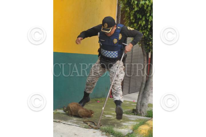CIUDAD DE MÉXICO, 25SEPTIEMBRE2018.- Una Marta se escapó del zoológico de Aragón y llego a una casa en la calle 547 casi esquina con 508 en la colonia San Juan de Aragón segunda sección donde llego elementos de la policía resguardando al animal. Por unos instantes escapo provocando la persecución de vecinos y elementos de seguridad. FOTO: ARMANDO MONROY /CUARTOSCURO.COM
