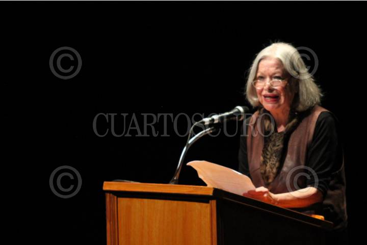La actriz Ana Ofelia Murgía durante su participación en el homenaje póstumo a la primera actriz Marta Aura, en el Teatro del Bosque Julio Castillo