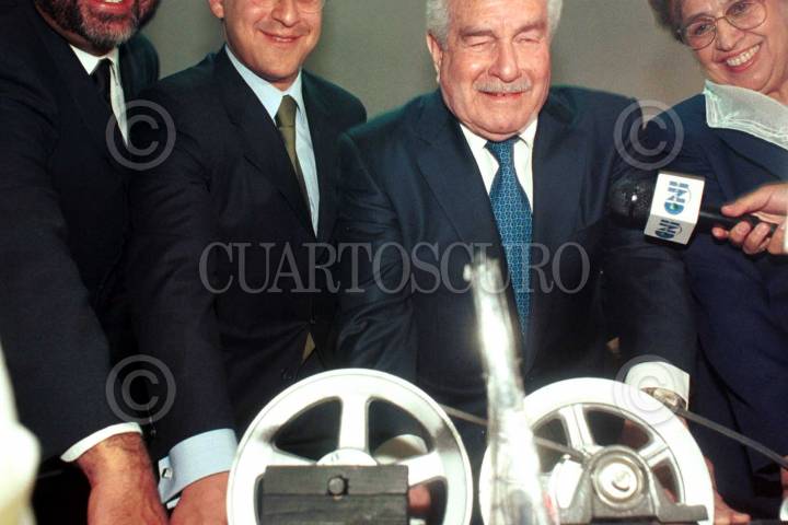 El director de la Comisión Federal de Electricidad, Alfredo Elías Ayub, platica con el secretario de Energía, Ernesto Martens Rebolledo, durante la entrega del XI Premio Nacional de ahorro de energía en las instalaciones del museo tecnológico de la CFE en el bosque de Chapultepec. FOTO: Juan Pablo Zamora/CUARTOSCURO.COM