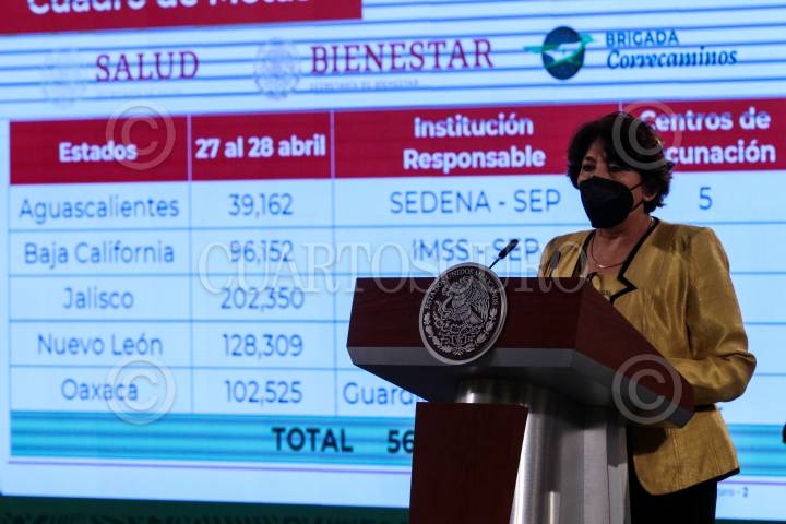 Delfina Gómez durante el infrorme del Pulso de la Salud