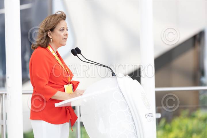 Martha Delgado, subsecretaria de Relaciones Exteriores, durante la celebración del Día Nacional de México en la Expo Dubái 2020.