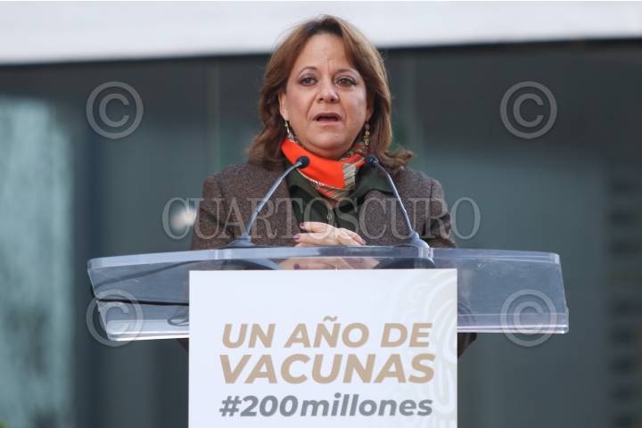 Martha Delgado, subsecretaría de la Secretaría de Relaciones Exteriores, durante su participación durante el evento "Un año de vacunas #200 millones", el cual se realizó en la terraza de la Secretaría de Relaciones Exteriores